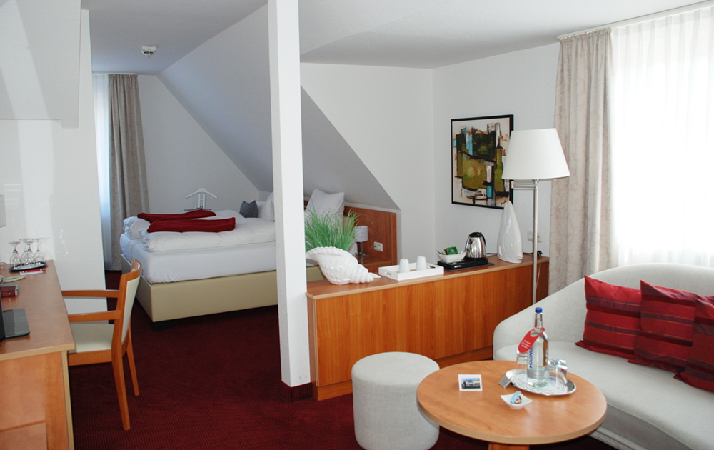 Die ca. 100 qm große Suite mit 2 Doppelzimmern lässt wenige Wünsche offen - gleiches trifft auch auf die Juniorsuite de Luxe (Mansardsuite) zu. Bereits 2018 haben wir unseren neuen Anbau mit einer schicken Lobby und einer kleinen Tages-Bar eröffnet.